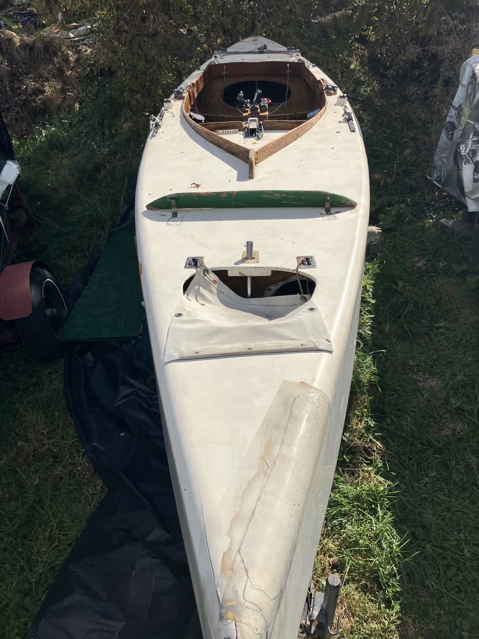 A Russell Robinson "Lifeboat" self rescuing 110. All the pieces are here sitting on a serviceable trailer. Needs more than a paint job, but how much more depends on you.